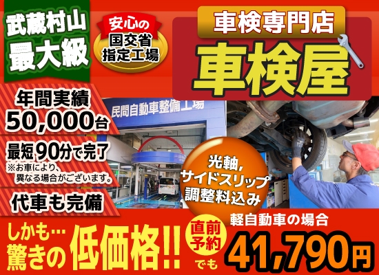 武蔵村山で4.1万の格安車検!武蔵村山で車検年間5千台
